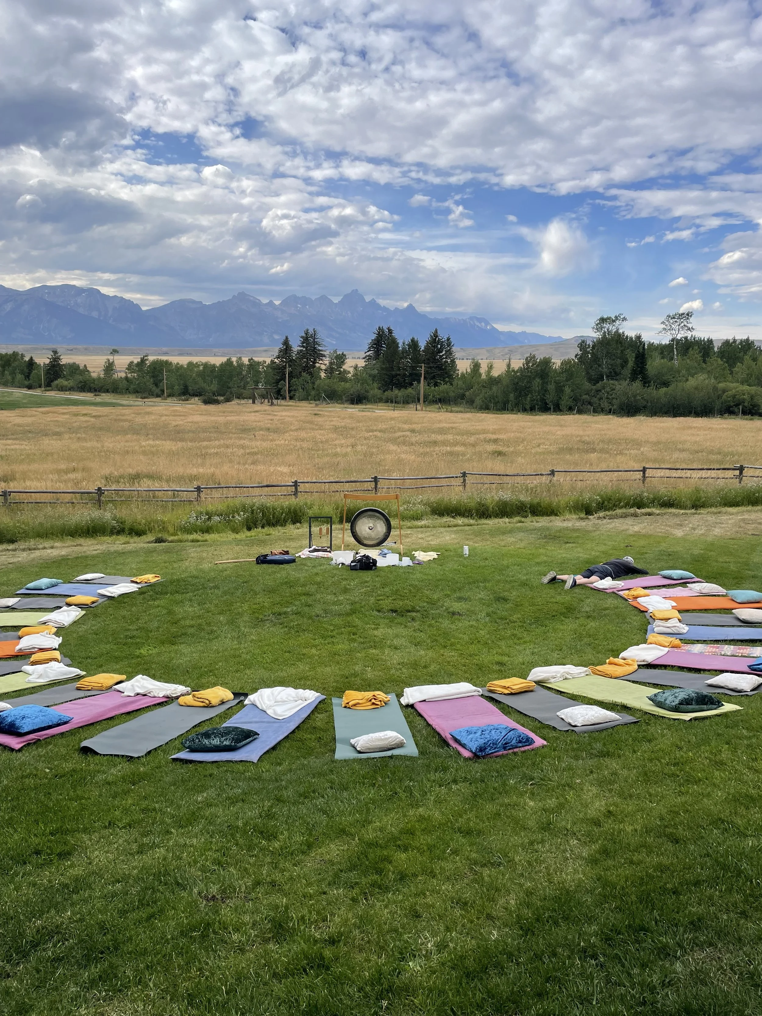 Amazing Kriya yoga instructor, Deidre Norman, will guide a 40 minute class of breathe work, movement and mantra that is both releasing and invigorating. Then ground and surrender whilst lying on this powerful land beside the babbling brook as Daniela soothes your body, mind and soul with the sounds of the crystal singing bowls in nature. This is not an experience to be missed by any wellness , yogic, spiritual seekers when in Jackson.